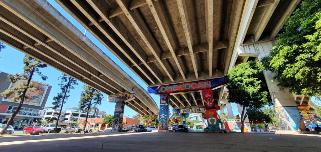 Admin done, I headed to Barrio Logan, I’ve been trying to visit Las Cuatro Milpas for the last few days. I’m told that this is a real genuine Mexican food place, not to be sniffed at. The trolley drops me off about 10 minutes south of Downtown San Diego, and I stop to check out one of the tallest freeway bridges I’ve ever seen.