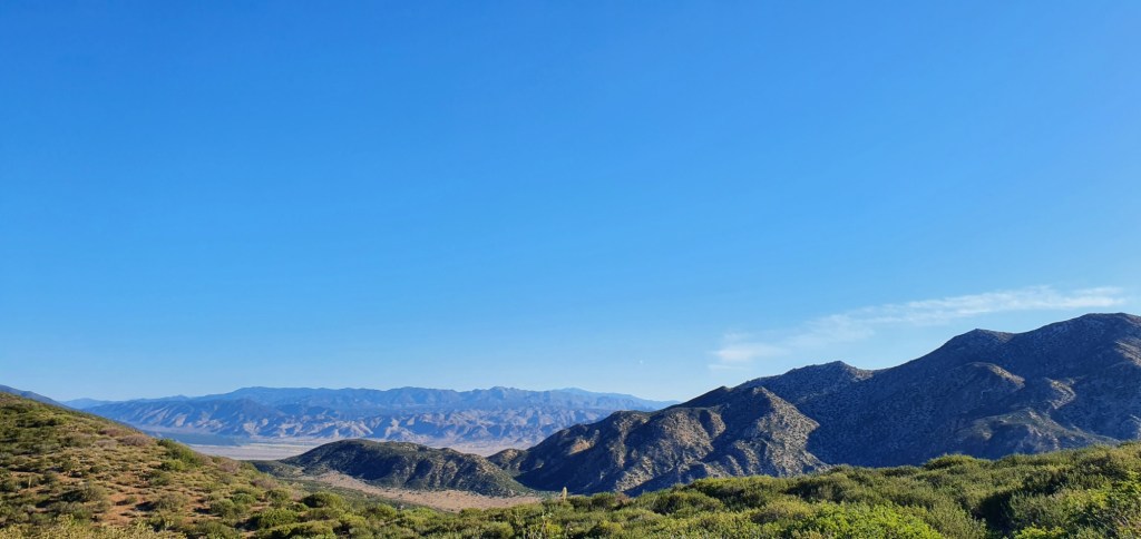 The valley floor was flat and smooth with a wide path, we made it to the roadside in no time. Before even crossing the fence to the road, a passing car had spotted us and stopped to give us a ride into Julian. I’d heard that hitching here would be easy, but didn’t expect this.