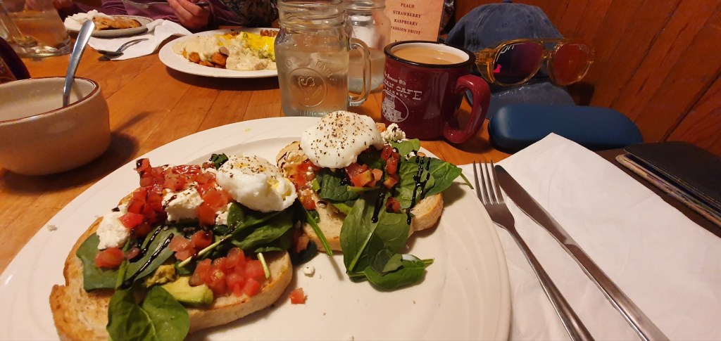 First stop after packing up at the Legion was Julian Cafe and Bakery. This place has a great menu and, like most places I’ve seen here, offers free refills on coffee. While there with the others who stayed at the Legion, Lucy & Tiger made a surprise entrance. They’d camped near the trail head last night, and hitched into town this morning. Some decent miles must have been pulled to catch up after their Mt Laguna zero mile day.
