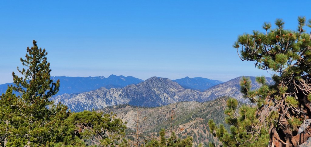 We started on trail at 8 am and right away headed up to Throop Peak at 9108 ft, 2776 m. The sharp climb, with no pack on, was a perfect way to start the day. The view from the top was excellent as well.