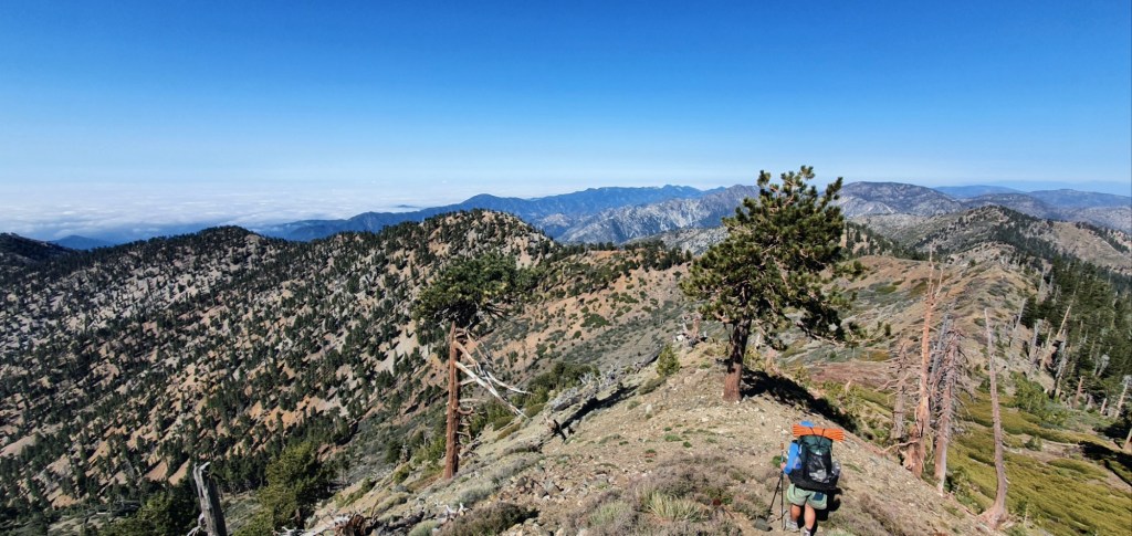 We descended back to the trail, and continued along the ridge until reaching Mt Hawkins. The peak here is at 8832 ft, 2693 m. A faint trail can be followed down the other side to save backtracking to the PCT.