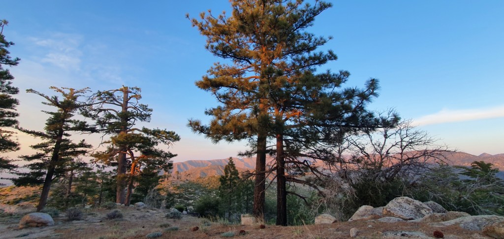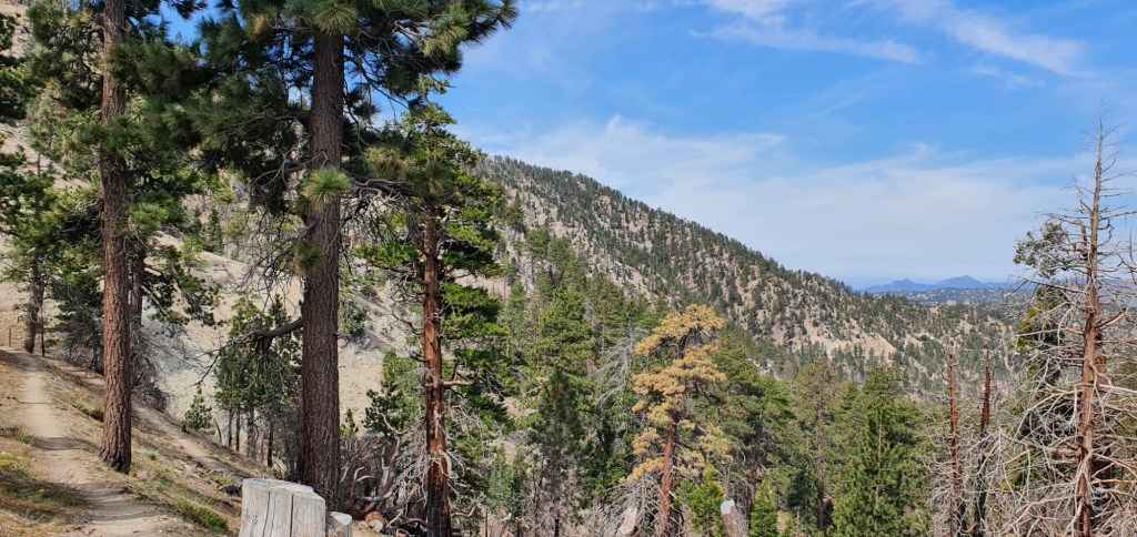 We stop for lunch at the Three Points picnic area. While here, a car pulls up and offers snacks and cold drinks. I take some snacks and a can of Dr Pepper. The driver introduces himself as Bob from the Angeles Crest Christian Camp. We hang out and chat for a while about the trail, and the closures behind us.