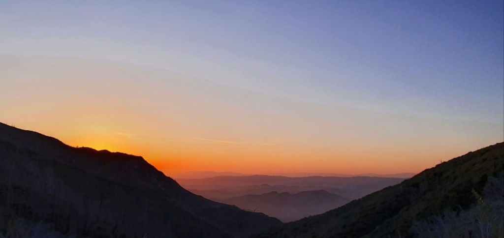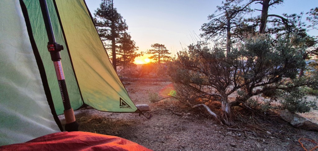 I made it to camp with plenty of daylight left, a nice change from the last week. I set up my tent on a good flat site, coooked dinner, and enjoyed the sunset in the valley below. An early night tonight for hopefully an early start tomorrow to beat the heat.
