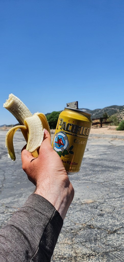 When I got to the bottom I was stoked to see the truck set up with everything available. I grabbed a banana and a turkey sandwich, as well as a can of Pacifico lager.