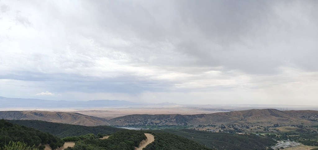 At the top of the second ridge, I got my first view of the Mojave Desert Western Arm, where we would be crossing on the LA Aquaduct. It was overcast on the ridge, but still looked hot and dry down below.