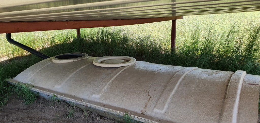 Later in the morning, I walk along a forestry dirt road to a water supply to save having to go 1.5 miles off trail, and then back again. There are a lot of comments describing the complicated contraptions people have devised to get water out of the angled tank with it’s small access point. I noticed that the lid has it’s screws off and I can just lift this off to scoop water out from the top instead.
