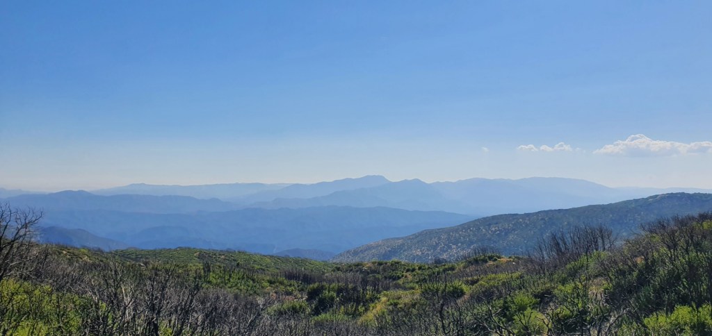 In the afternoon the trail winds along a ridge which gives amazing views of the Mojave Desert. It’s slightly foreboding looking down there, I can see just how hot and exposed it is.