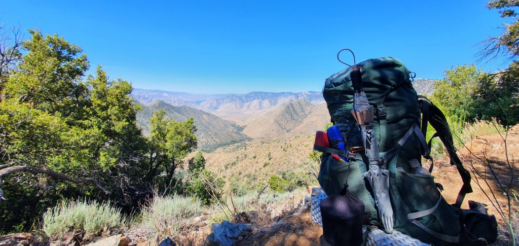 The day starts with a big climb, in just 4 miles, 6.6 km we gain 1644 ft, 501 m of elevation. For the first hour or so, the trail is under tree cover with a fairly gentle grade. There are also a few streams under the trees so I keep going until the last one before filling up with 3 liters.