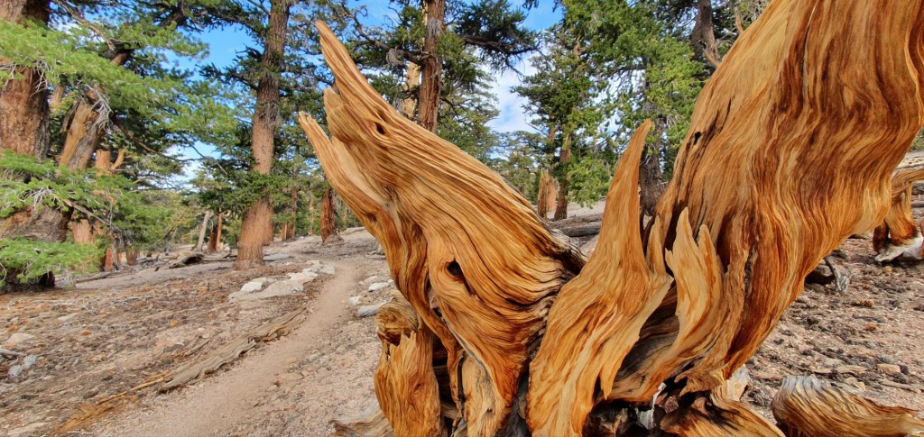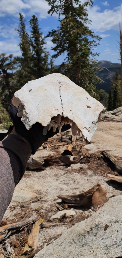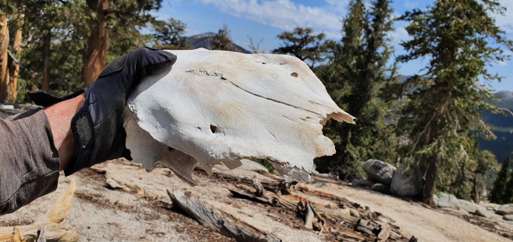 The first couple of hours on trail today were on wide, flat trail, slight descent in parts. I was walking through wind blasted pine forest, following the exposed ridge along its western side. The air was cold, dry, and thin. Wind gusts had a short, sharp tone to them which only seems to happen up high. The air had me feeling excited, the same type of energy I’d feel whenever I was skiing at home, not anxious, but eager to move forward and see more.
