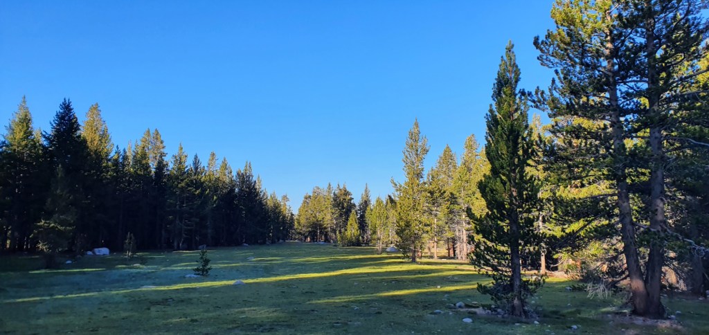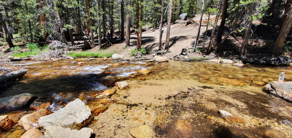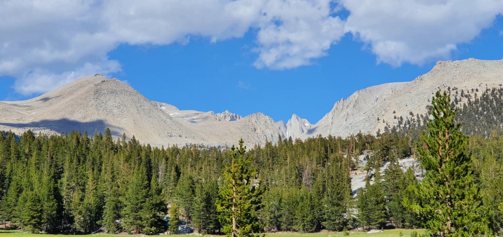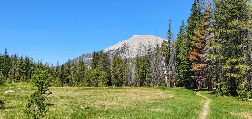 The day starts off very gentle. I walk through meadows with good tree cover and descend slightly as I go. I’m glad for the gentle trail, as my pack is heavy from resupply in Lone Pine.