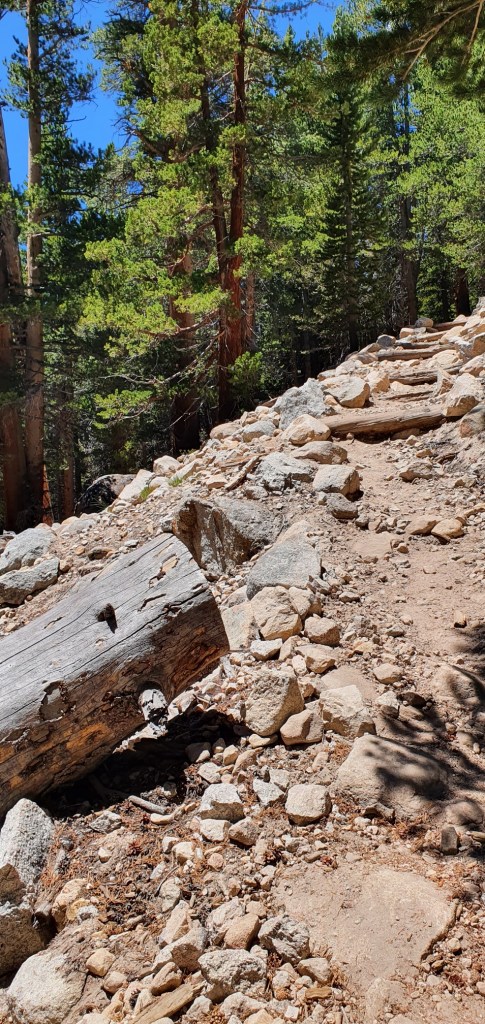 Today I covered 14.4 miles, 23.1 km from the tarn to Crabtree Meadows. The campsite at Crabtree Meadows is used as a basecamp for hikers to set up, rest and then summit Mt Whitney without having to pack, or carry all of their heavy gear with them.