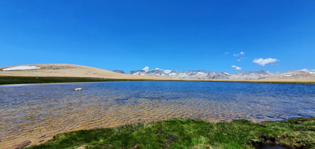 After crossing the creeks, we climbed up through several meadows with stunning views of the mountains around us. At the top of the climb was a large tarn surrounded by lush grass. I filled up water here, and soaked in the views all around me. It seems as though every bend here reveals an even more stunning sight than the last.