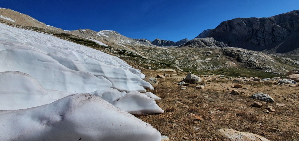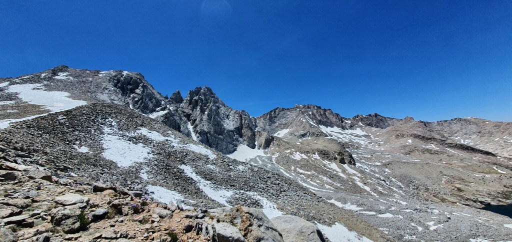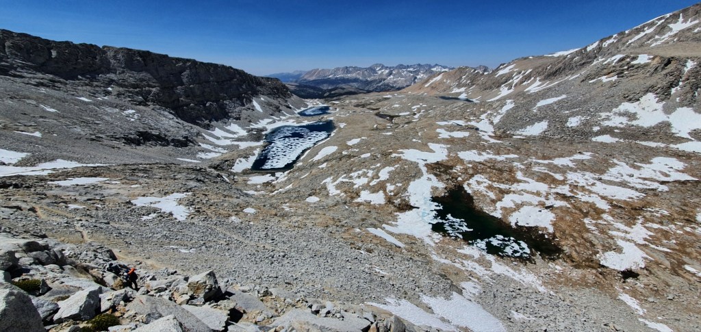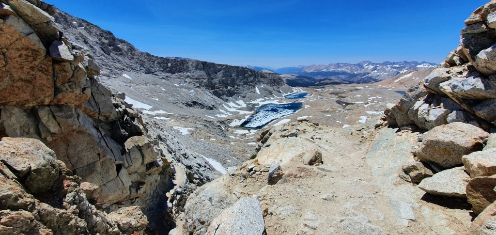 We went over the highest point on the PCT today; Forester Pass, at an altitude of 13 200 ft, 4025 m. The day was packed with epic views as we walked 12.3 miles, 19.8 km through the most stunning mountain landscapes on trail so far.