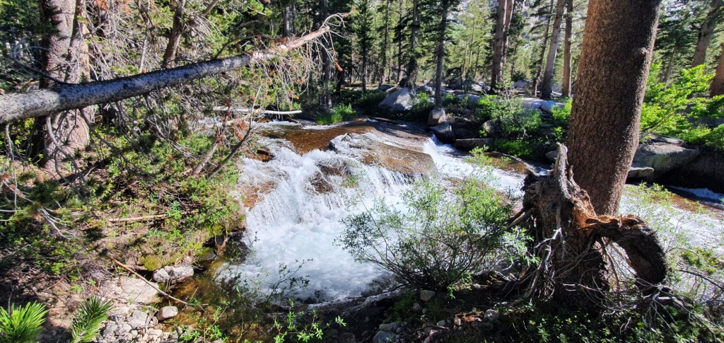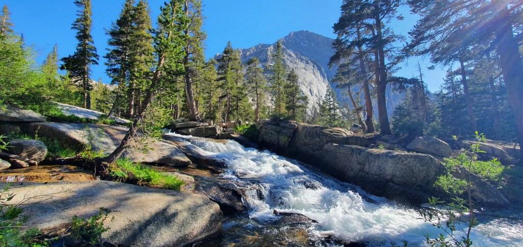 I stop by a crystal clear lake, top off my water and appreciate the surroundings. Forester Pass is visible above the lake and it’s amazing to see how far I’ve descended in what seems like such a short time.