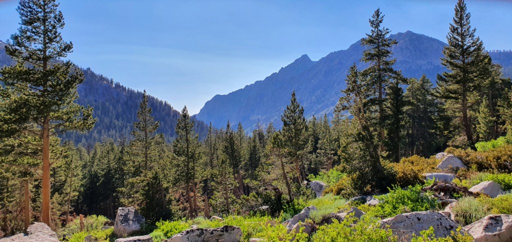 All the fresh water in the valley, and the warm sun makes the forest lush with new growth. I walk through the forest for a few more hours to find camp under the trees at the Lower Vidette Meadow.