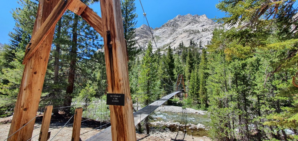 On the other side, the trail climbs sharply. The Woods Creek runs next to the trail, crashing down the valley over huge sheets of granite like a waterslide. You definitely don’t want to get too close to the river here, it would take you away and over the edge in the blink of an eye.