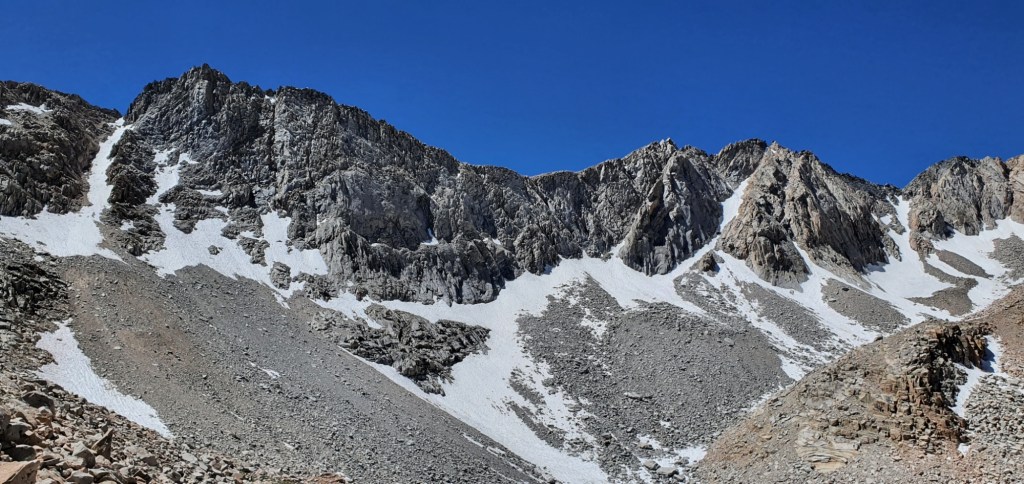 After about an hour walking from camp, Mather Pass stood before me like a wall of rock. I had one last chance to scoop some water and appreciate the view before my climb began. My legs had just finished warming up and I felt ready to tackle the pass.