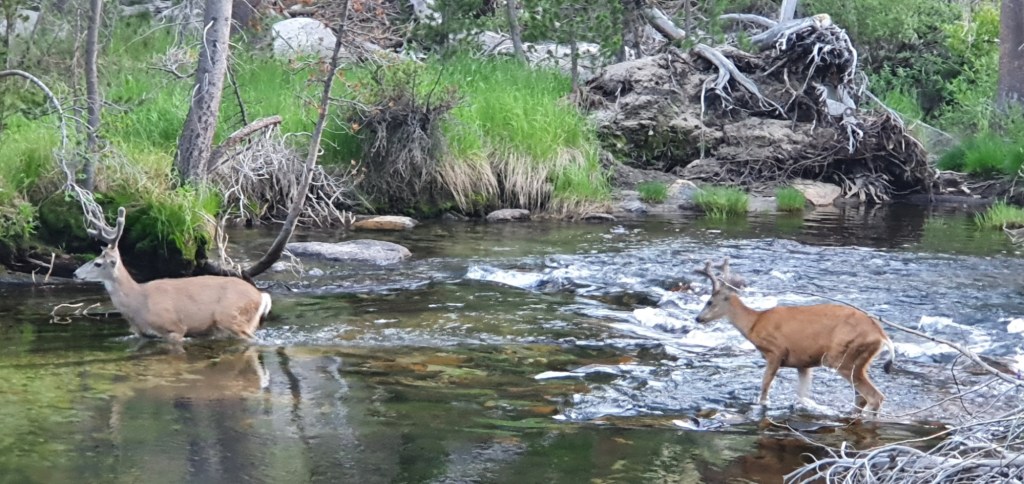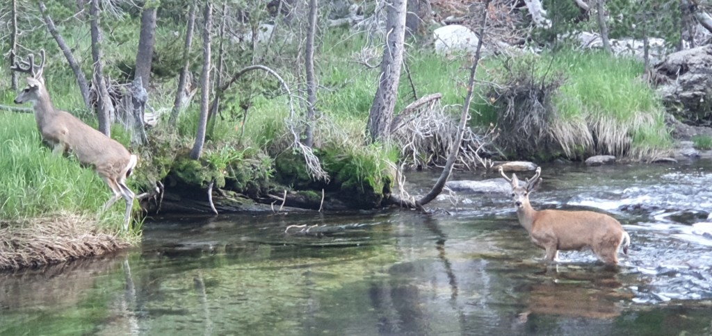 I make camp in the forest next to the Palisade Creek, and I make the most of the opportunity to take a refreshing dip. While I’m cooking dinner, some deer walk through my camp not even 10 m from me, the deer notice me on the way past but they don’t even seem worried by my presence.