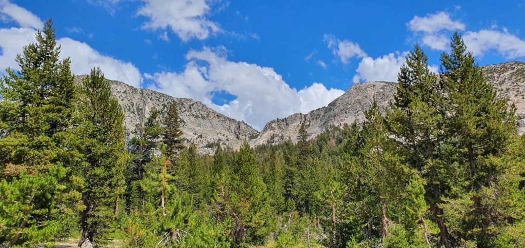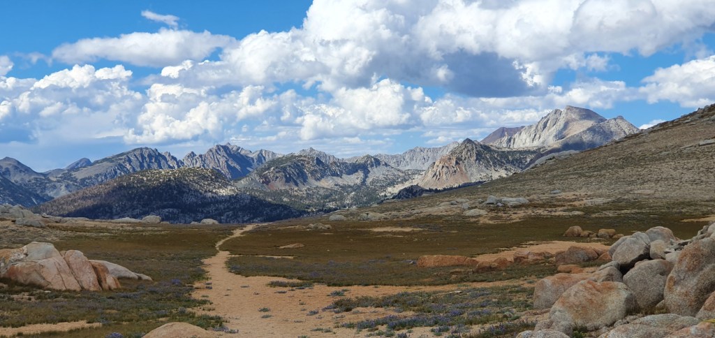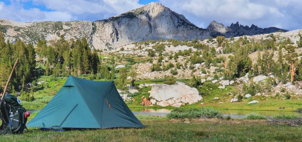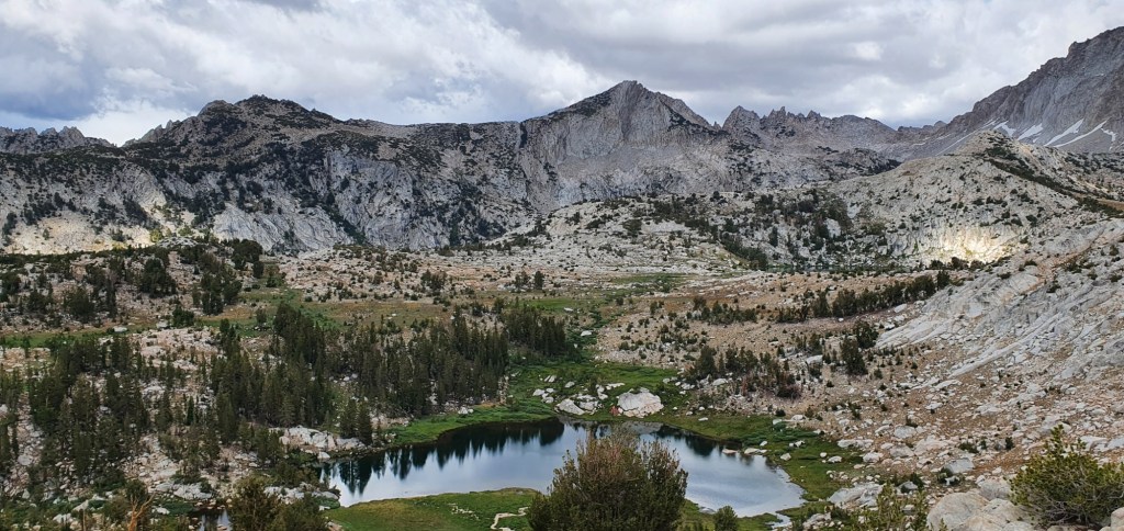 I hiked up out of Vermillion Valley Resort today and took the trail past Lake Thomas A Edison, up Cold Creek and through Graveyard Meadows to Goodale Pass. Just down the other side, I found camp alongside Papoose Lake. Today’s mileage was 10.7 miles, 17.4 km.