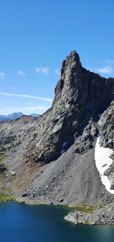 We had a pretty epic day today, started by heading up Minaret Creek, then scrambled up to Cecile Lake. A very steep descent to Iceberg Lake took us to the trail down to Ediza Lake. We followed Shadow Creek trail until it intersected with the JMT, then followed that north to camp on the pass above Garnet Lake. I don’t know today’s mileage, but it was probably around 10 miles.