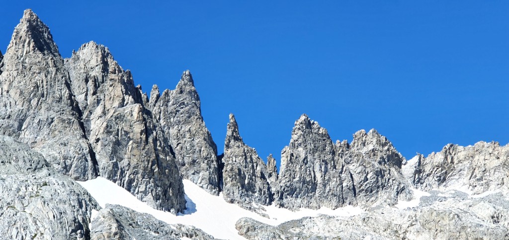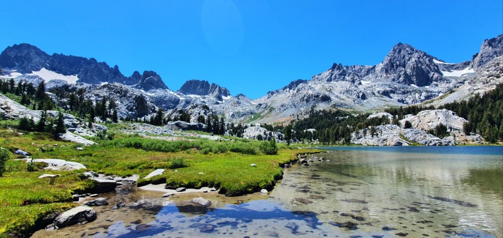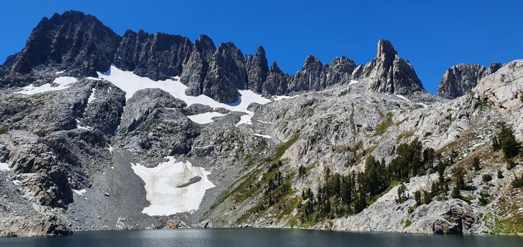 Walking around Iceberg Lake gives incredible views of the Minarets up close, a perspective you can’t get from the PCT. After Iceberg Lake, we drop down to Ediza Lake with crystal clear waters and great campsites on the far side.