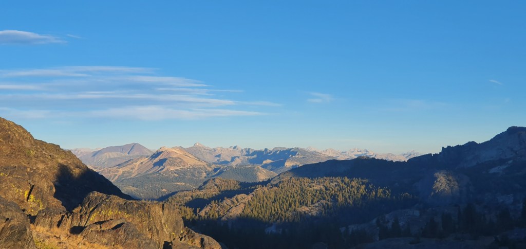 I woke up this morning early with to catch sunrise on the Minarets. The rock formations looked stunning in the golden-orange light of dawn. I watched the sunlight creep down into the valley while I ate my breakfast and let it dry my tent a bit before packing up.