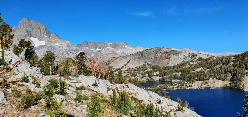 We picked our way down the other side to Thousand Island Lake. There is a land bridge and trail over the south western side of the lake which has great views of the ranges above the lake. We followed this trail and then headed up to the PCT from the other side.