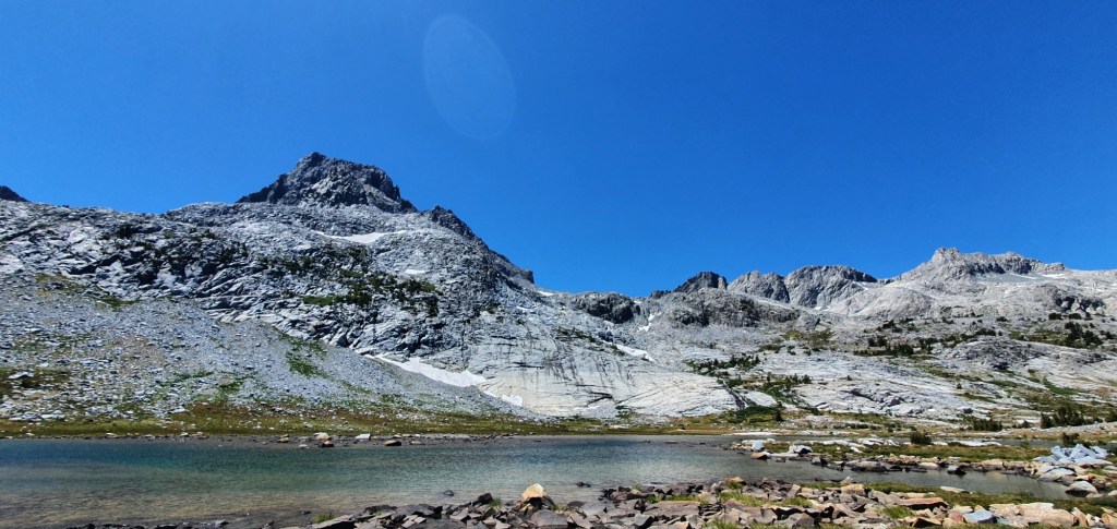 We continued with more cross country route finding today, leaving the JMT and travelling around the south and west sides of Garnet Lake. We crossed a pass between Garnet and Thousand Island Lakes then walked past Thousand Island Lake along the southwestern shore. We rejoined the PCT at mile 925. To finish off, we stuck with the PCT for 3.5 miles and made camp 2.6 miles from Donohue Pass.