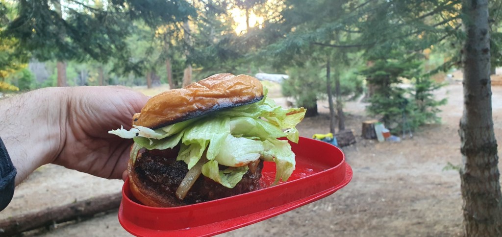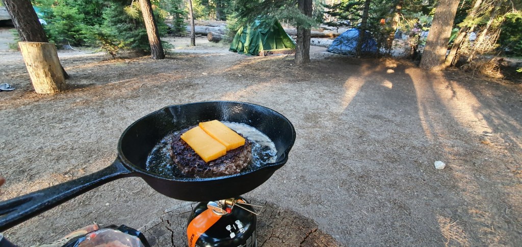 We crossed a bridge at the top of Nevada Falls, and from there it was only a mile to camp. The Little Yosemite Valley camp was actually huge, and dozens of people were camped here. Some were on their way to Half Dome, some on their way back, and many more were off on other adventures. We set up camp and cooked a fancy dinner; cheeseburgers with wagyu beef patties and fresh lettuce from the Yosemite Village store.