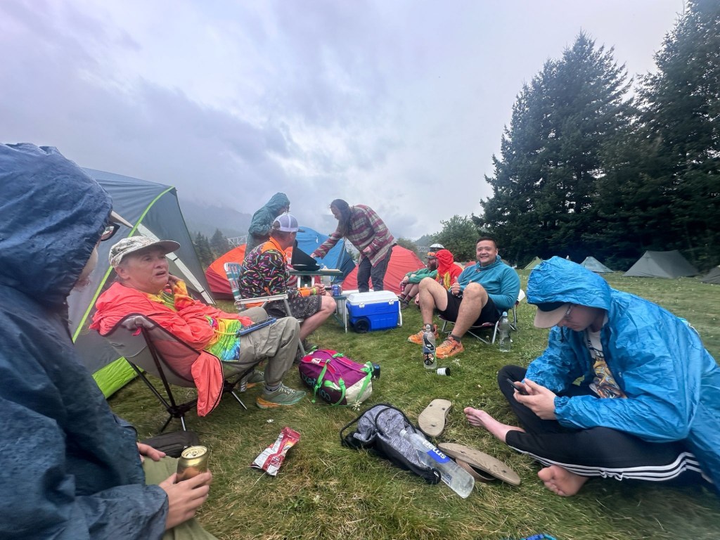 There was rain on and off during the first day, but that didn’t stop us from hanging out and catching up. In the evening, we cooked a BBQ dinner during a pause in the rain, then partied inside a big tent brought out by one of the guys from Portland.