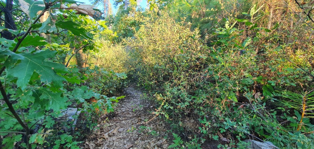 As the sun rose, the trail revealed itself to me. There was tough overgrowth on both sides in places, and sparse forest in others. Out here, things felt very different to what I had become used to in the Sierra.