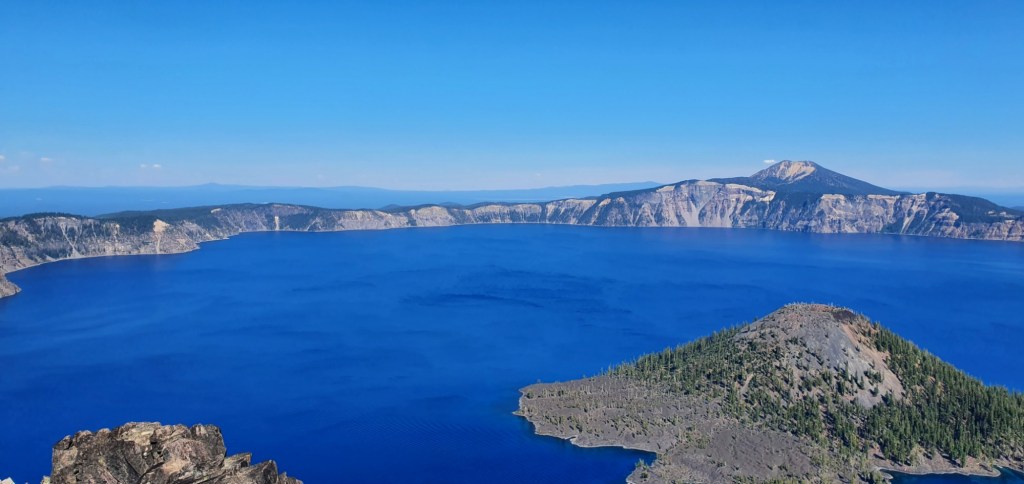We hiked up to, and then around the Crater Lake Rim today. Starting from Mazama Village, we got to the top of the rim around 11:30 am, with enough time for a couple of beers at the lodge. We walked around the Crater Lake Rim trail to the far side of the lake before descending back to the PCT and finding camp. Today’s mileage was 14.9 miles, 23.9 km