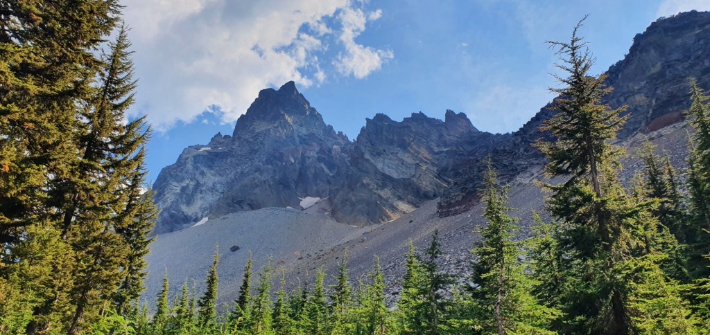 I approached the last ridge and saw the north face of Thielsen for the first time. The mountain was rugged, with craggy ridges and huge fields of smashed talus on the lower slopes.