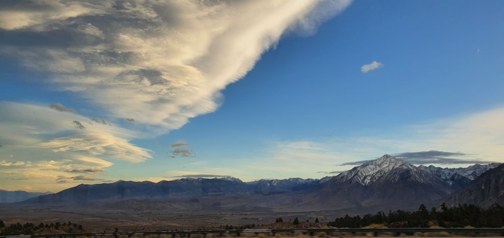 The view out the window was eerily familiar, yet different. Last time I saw Eastern Sierra, it was peak summer. The bright, clear sky and hard sunlight I remember was now in contrast with the long shadows and snow dusted peaks before me.