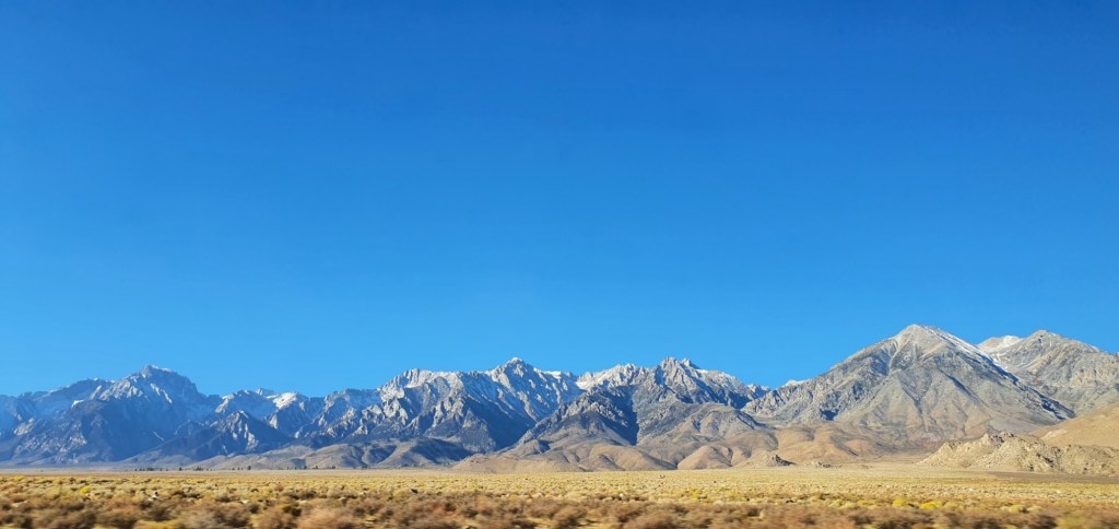 I spent just one night at the Hostel California, a feat which I didn’t believe possible. The next day, I woke early and caught the bus southwards, down the rest of Eastern Sierra. As we drove further south, older and older memories came back to me. We passed through Independence, and I remembered Sam and Brian who picked me up from Kearsarge Pass to go to Lone Pine that night. The bus continued through Lone Pine, passing Mt Whitney on the way into town.