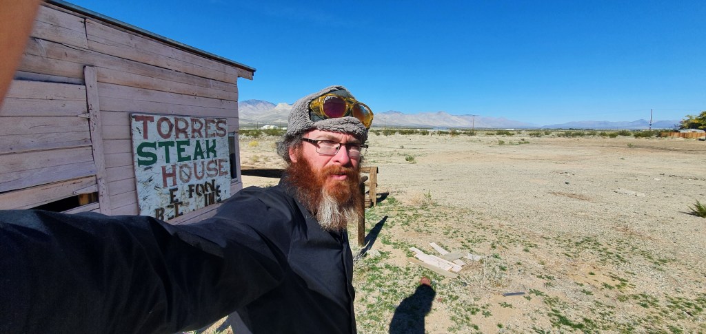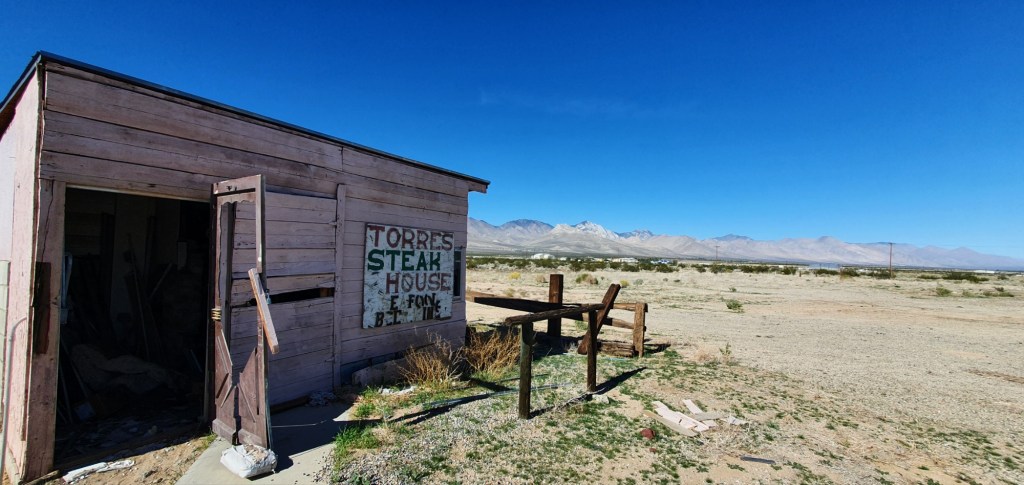 The bus continued its southwards journey and I was shocked to find myself having a rest stop at the old Torres Steak House. I stepped off the bus and revisited the old shed we’d stopped by on the way to Walker Pass with Fortune Cookie and Star.